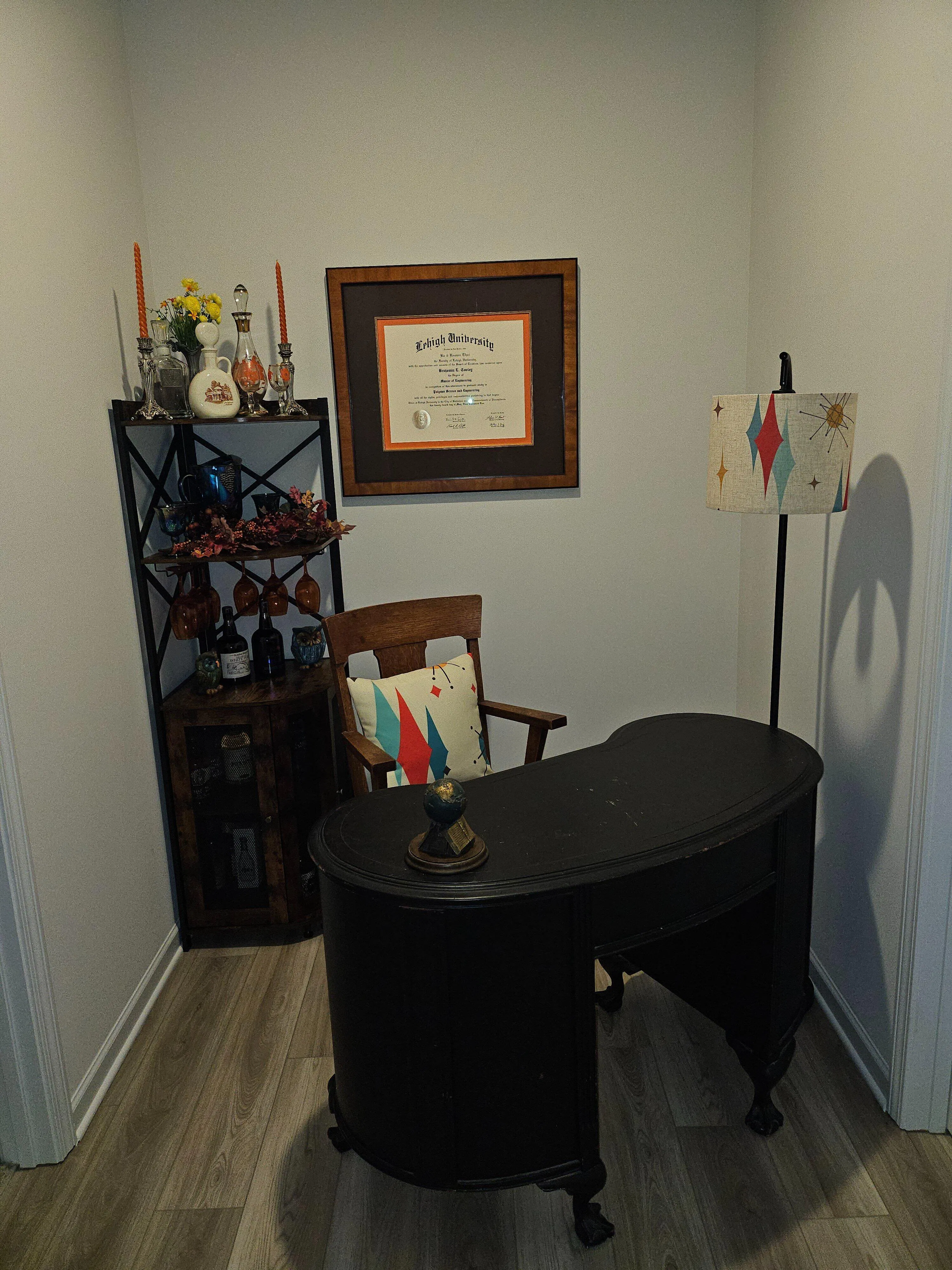 I have been collecting vintage items for a few years now and find myself drawn more and more to the mid-century modern era. I recently moved and need to do more work from home so when I created the space, I was looking for a touch of MCM. The items I purchased (pillow and lamp) created the look I wanted to achieve. I can't wait to purchase additional items to transform other areas in my home.