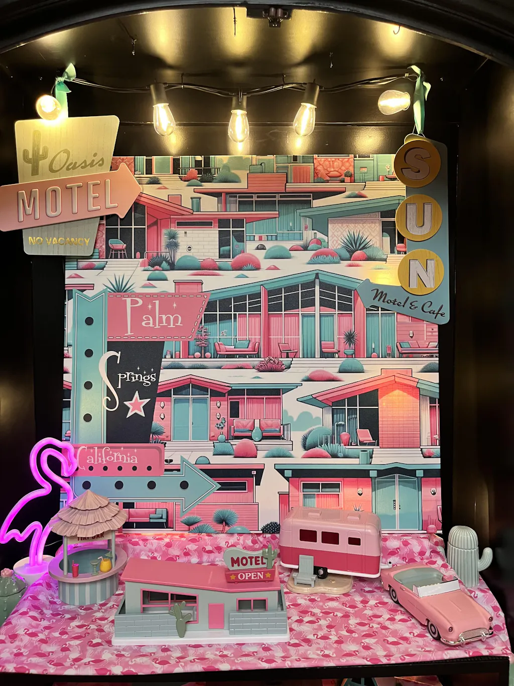 Mid Century Modern Palm Springs California Pink Aqua 50s Wall Art